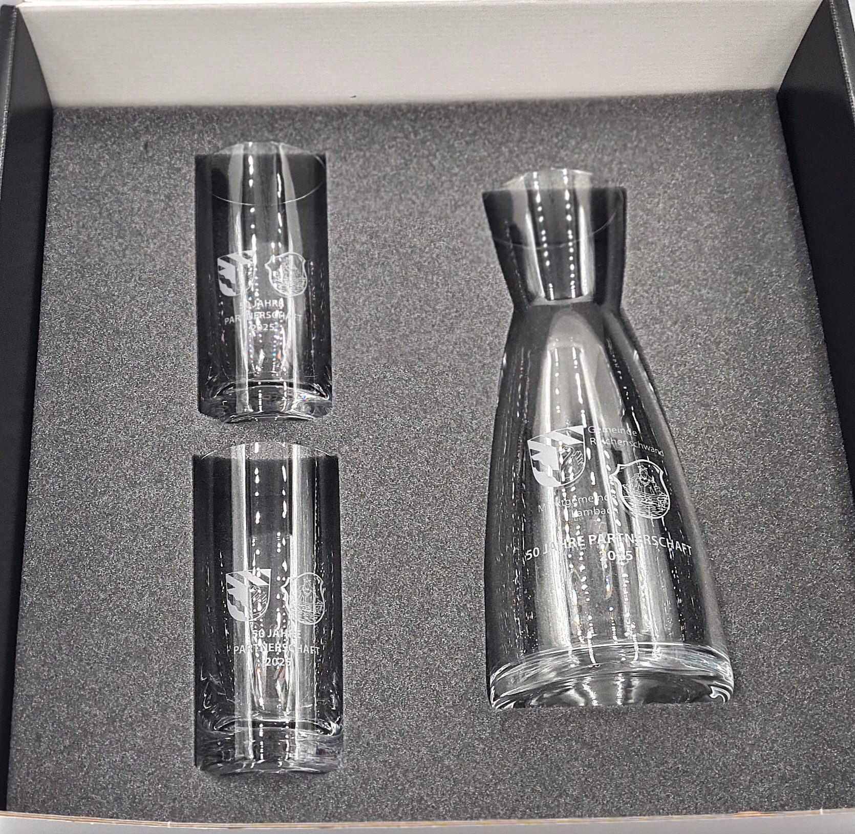 Exklusives Wasserset bestehend aus Wasserkaraffe 1,0l sowie 2 Trinkgläser im edlen