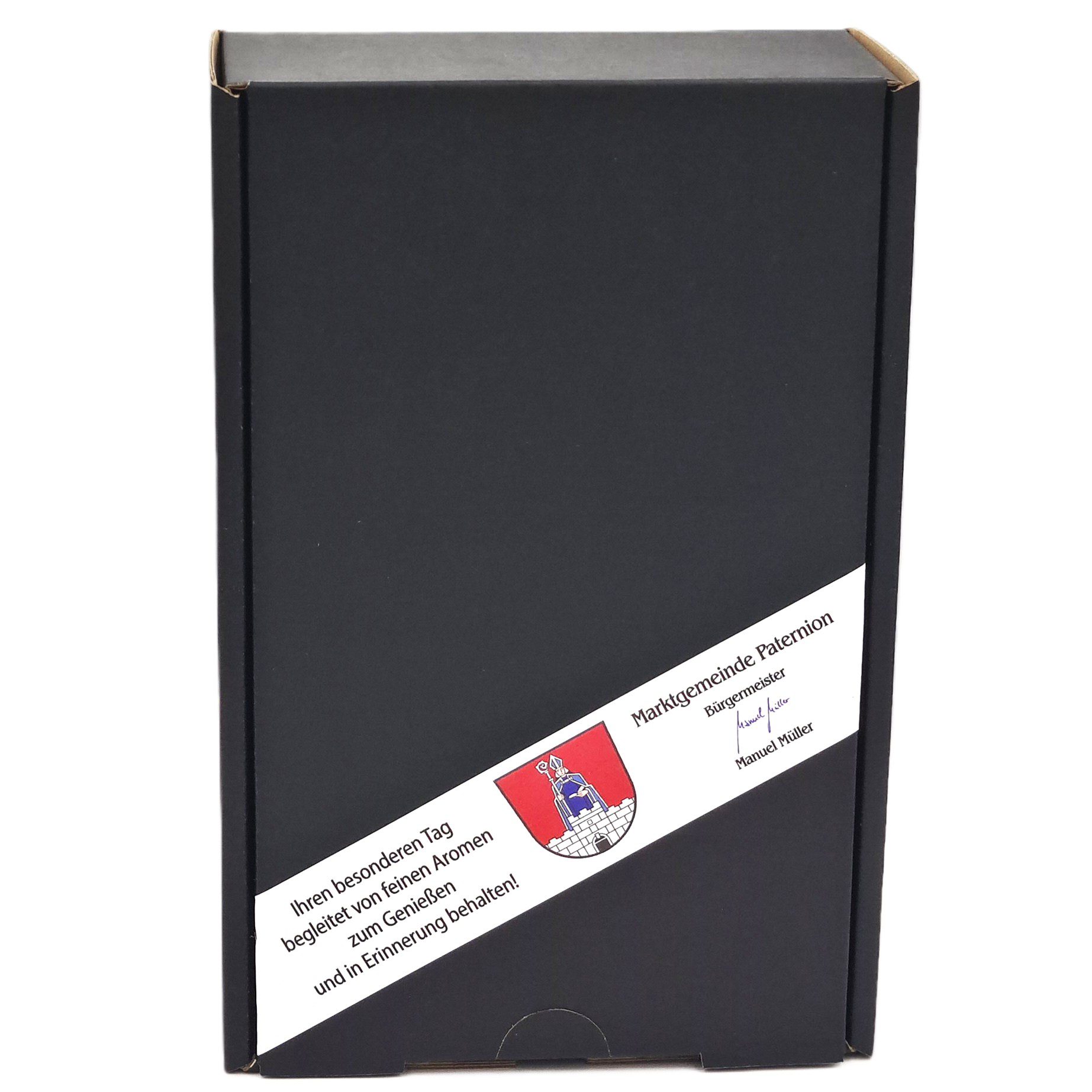 17% Vol. inklusive Standardgravur mit Schokovarianten „GLÜCKSMOMENTEN“ im schwarzen Geschenkkarton mit