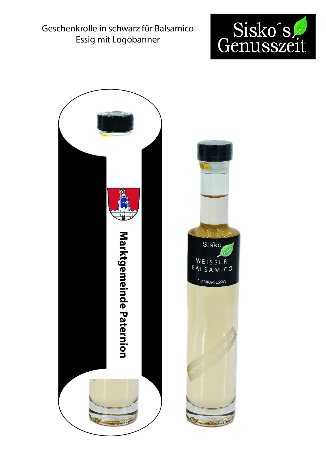 Geschenkrolle mit Widmungstext seitlich angeordnet.